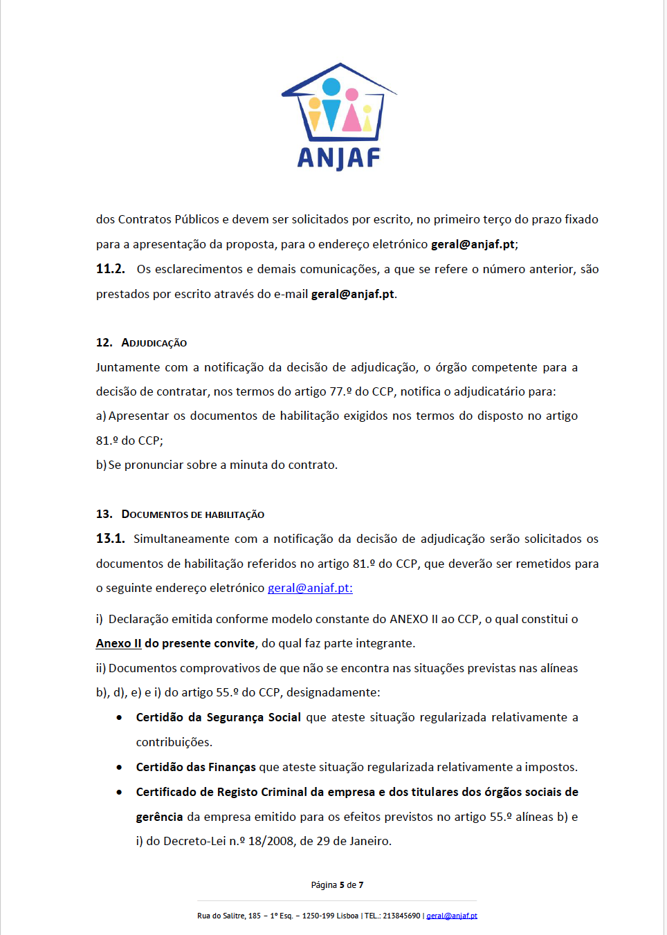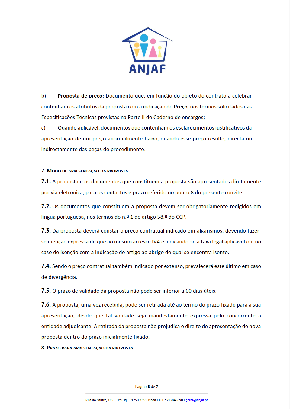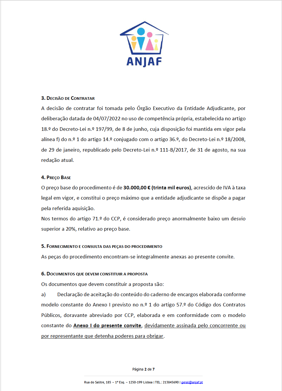 Caso haja outras empresas que possuam a capacidade e o interesse em participar desta consulta, convidamos a manifestar a sua vontade através do email geral@anjaf.pt. A ANJAF valoriza a inclusão de novos potenciais parceiros que possam enriquecer este processo com a sua experiência e propostas.