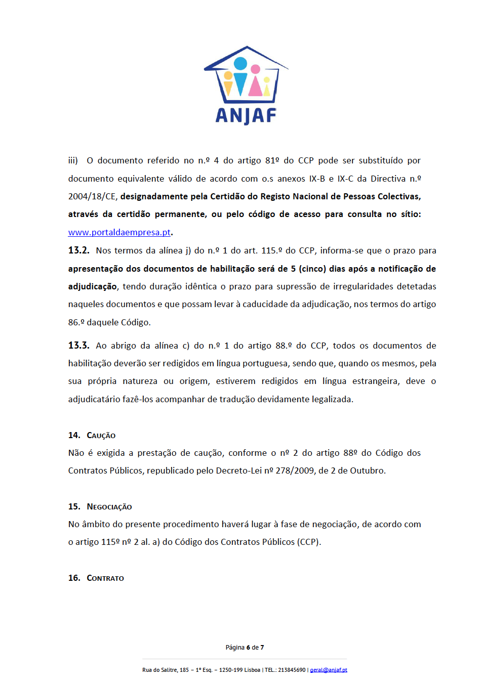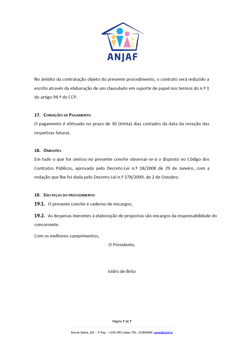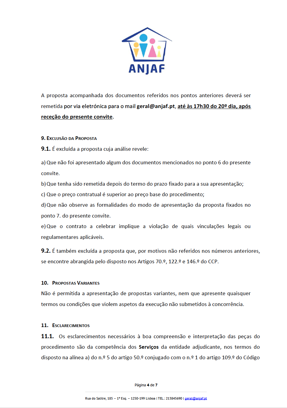 Caso haja outras empresas que possuam a capacidade e o interesse em participar desta consulta, convidamos a manifestar a sua vontade através do email geral@anjaf.pt. A ANJAF valoriza a inclusão de novos potenciais parceiros que possam enriquecer este processo com a sua experiência e propostas.